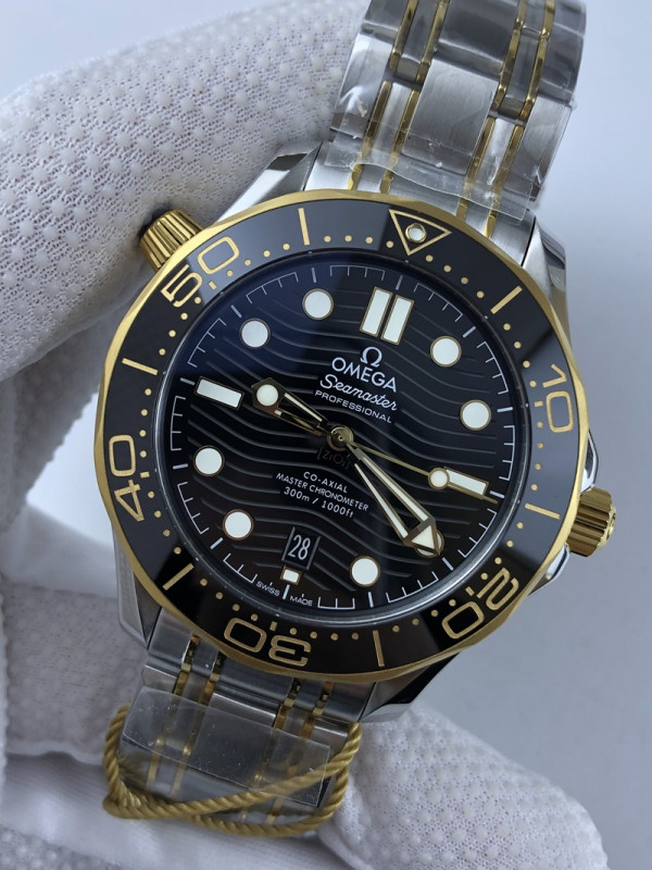 (준비완료/특급배송)NO.632/OR공장 오메가 씨마스터 다이버300 옐로우골드 콤비 블랙 브슬 /