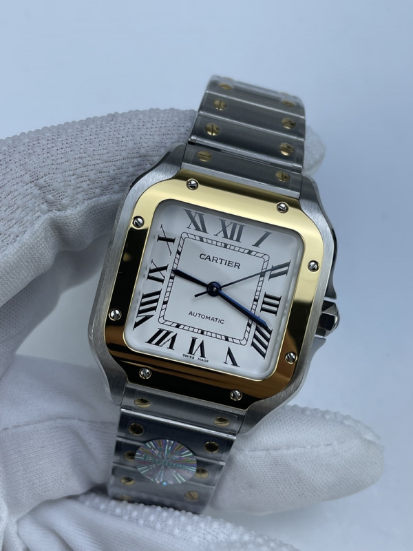 (국내발송1점 ) BV공장 까르띠에 산토스 2018 미디움 스틸 옐로우골드콤비 화이트다이얼 스마트링크 브슬 35MM